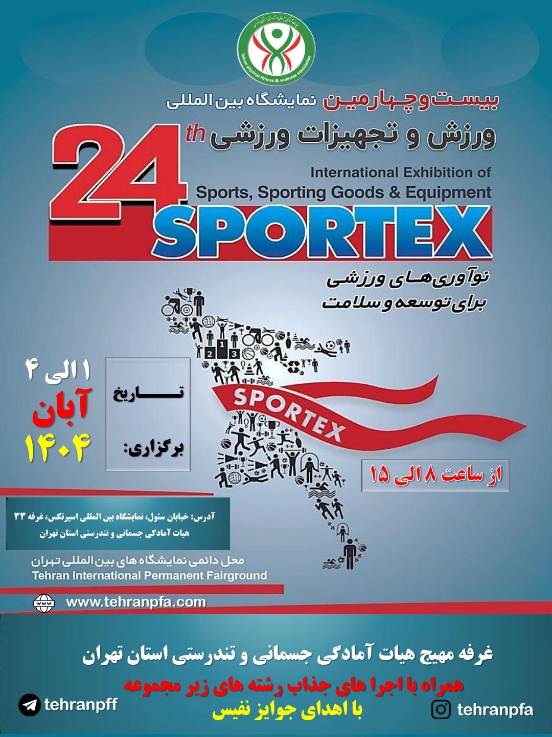 غرفه هیأت آمادگی جسمانی و تندرستی استان تهران در بیست‌وچهارمین نمایشگاه بین‌المللی ورزش و تجهیزات ورزشی (SPORTEX 2025)